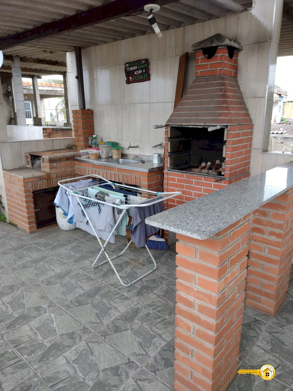 - Ampla área gourmet coberta na parte superior com churrasqueira, pia e forno a lenha;