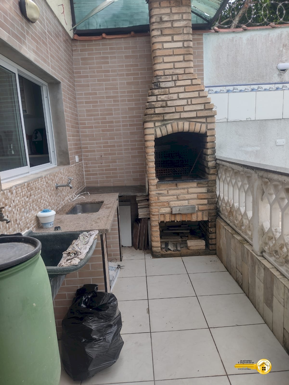 - Área gourmet com pia, churrasqueira e tanque