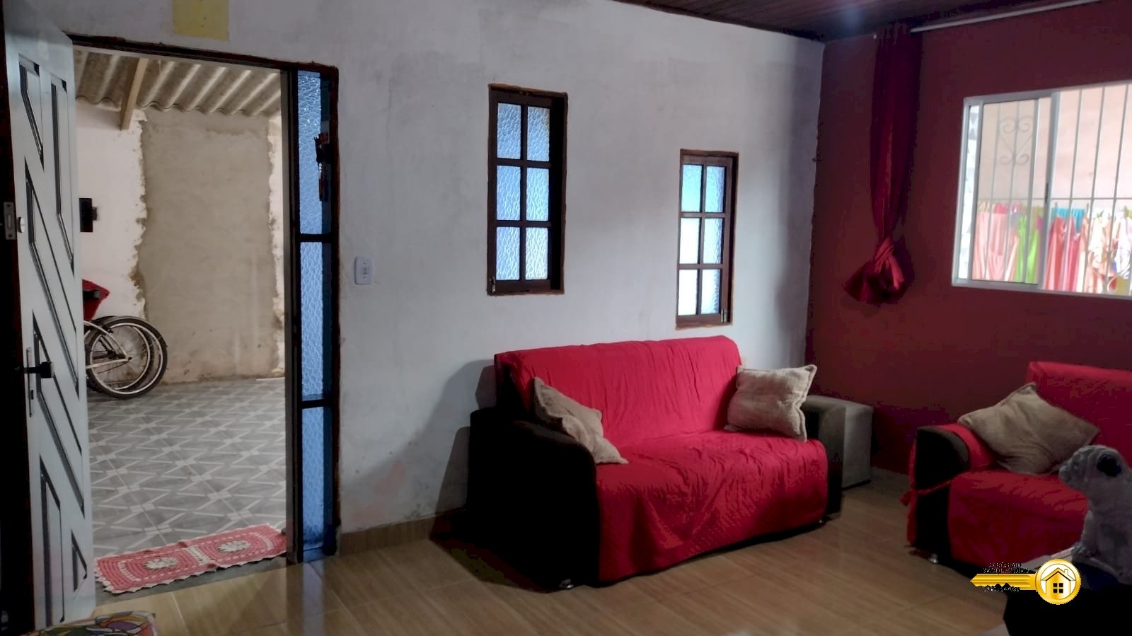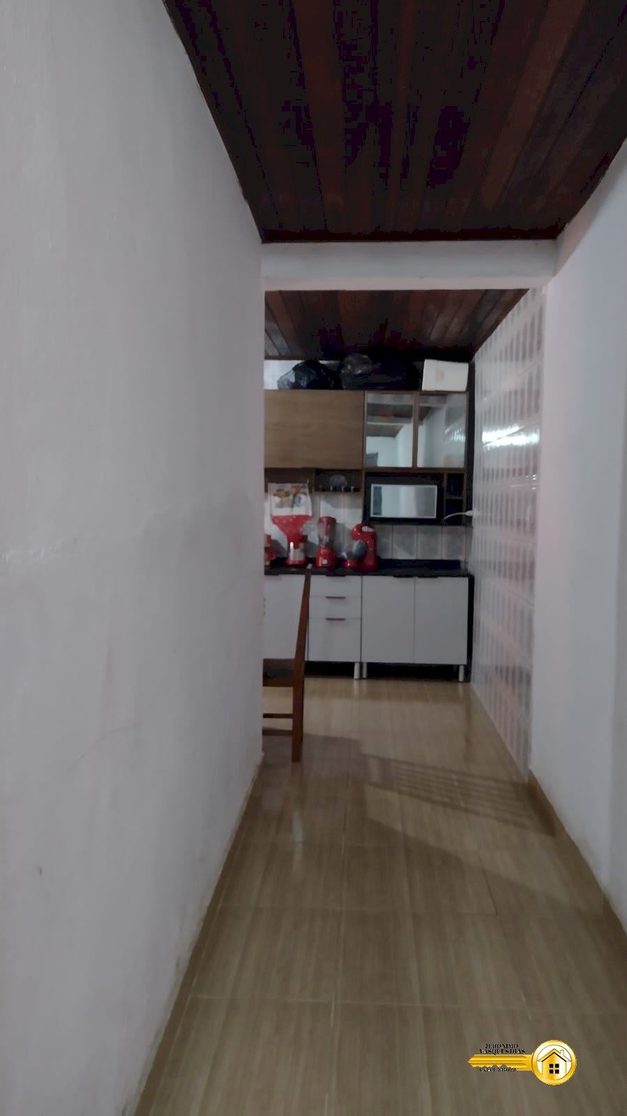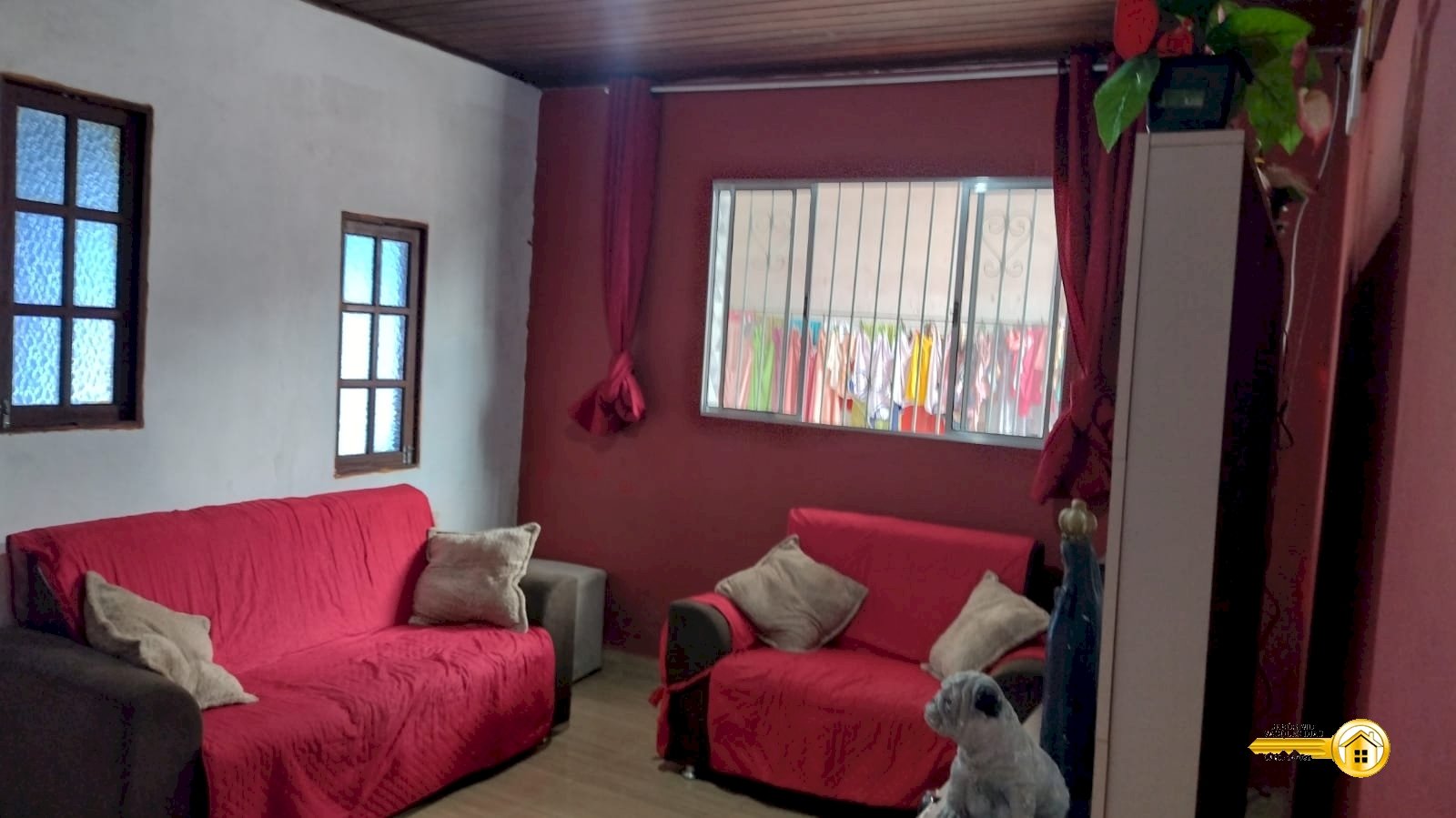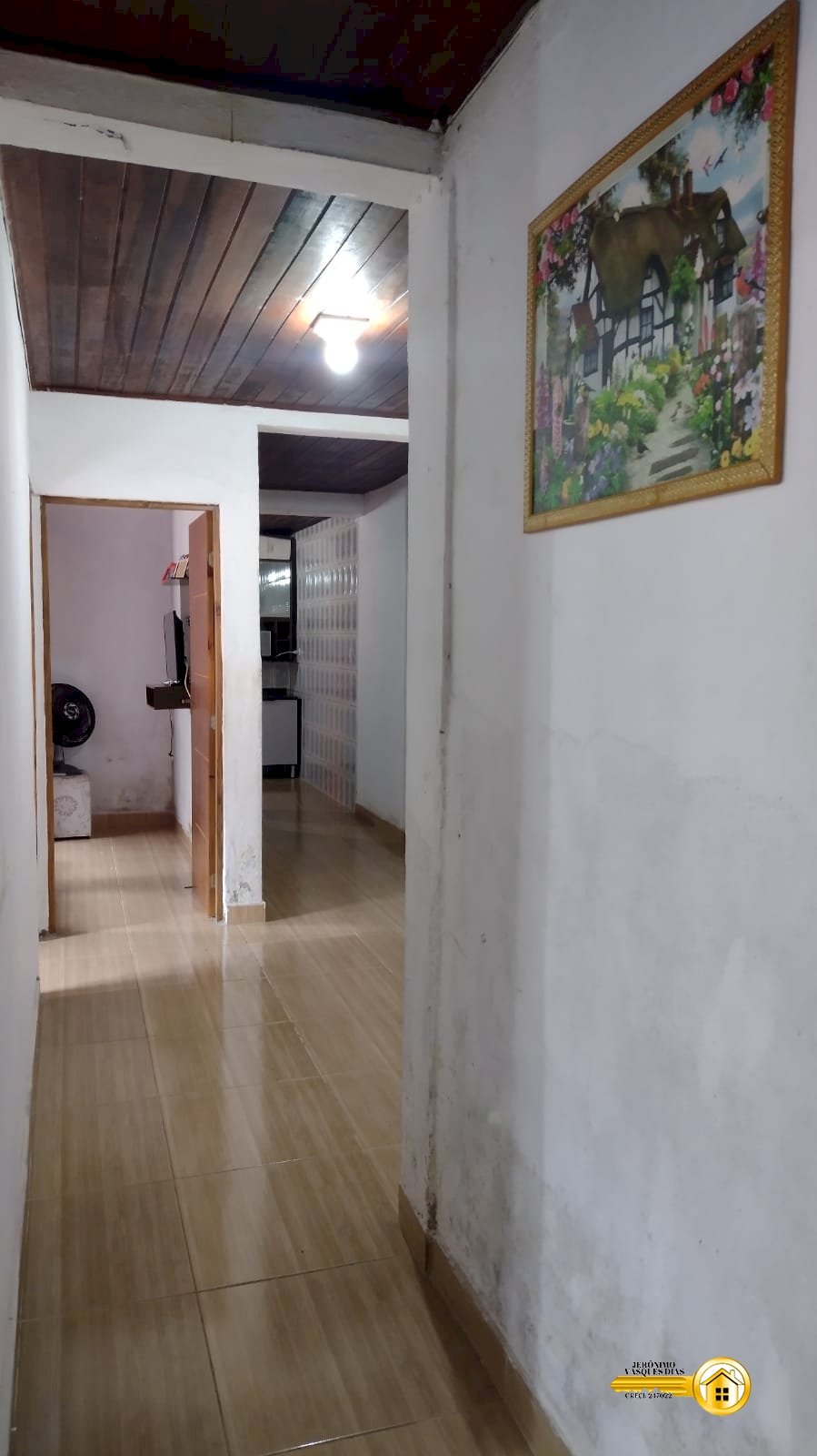- Casa com forro de madeira.